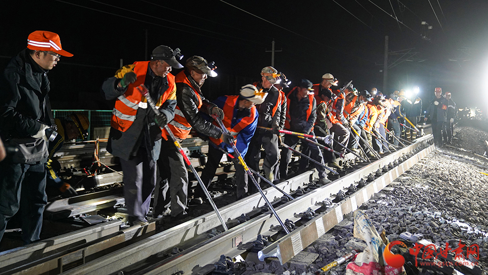 4月13日21時(shí)30分,位于河西走廊的蘭新鐵路截河壩站人頭攢動(dòng)、燈火通明,蘭州鐵路局武威工務(wù)段組織80余名干部職工對(duì)站內(nèi)3號(hào)道岔軌件進(jìn)行更換升級(jí)。