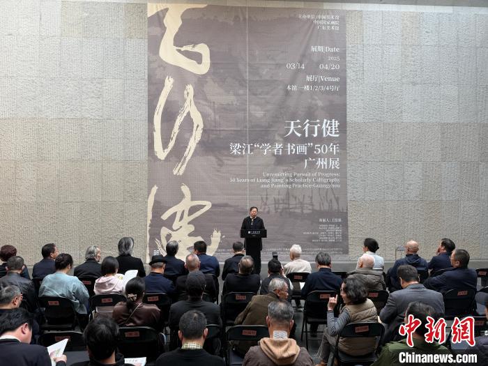 天行健——梁江“學(xué)者書畫”50年廣州展16日在廣東美術(shù)館開幕,活動由中國美術(shù)館、中國國家畫院、廣東美術(shù)館共同主辦。