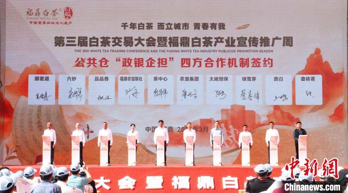福鼎白茶公共倉(cāng)“政銀企擔(dān)”四方合作機(jī)制簽約儀式。 林榕生 攝