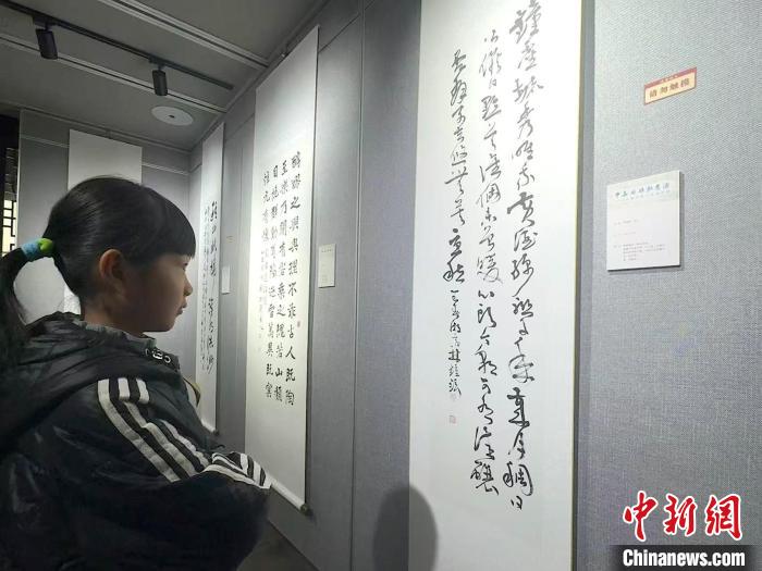 3月30日,一名女孩欣賞韓國(guó)書法家的書法作品。項(xiàng)菁 攝