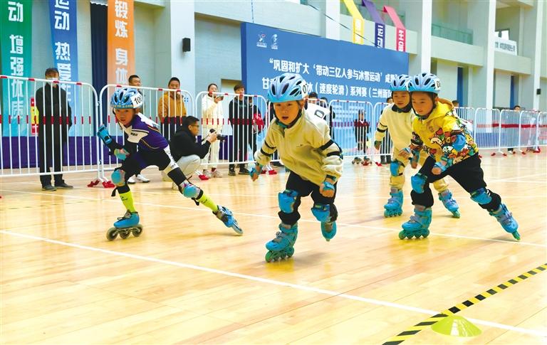 4月12日,“鞏固和擴(kuò)大‘帶動三億人參與冰雪運動’成果”甘肅省速度滑冰(速度輪滑)系列賽(蘭州新區(qū)站)在甘肅省體育館開賽。