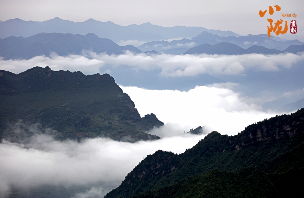 大雨過后,波瀾壯闊的云海層層疊疊,猶如萬(wàn)馬奔騰,時(shí)而風(fēng)平浪靜,浩如煙海;時(shí)而沒過山間,猶如涌動(dòng)的潮水;時(shí)而悄悄褪去,猶如飄動(dòng)的面紗,宛若人間仙境。