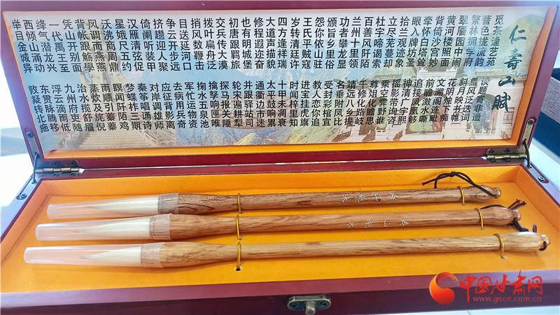 “這是上海著名的周虎臣毛筆,我們將非遺引入蘭州,用桃木做毛筆,帶來更好的人文體驗。”蔣芳說。