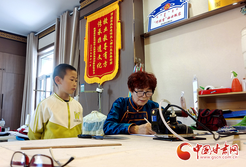 現(xiàn)年66歲的娜仁其其格歲月在她身上刻下了工匠的印記——由于常年埋頭制作蒙古族服飾,腰背已出現(xiàn)變形,眼睛近視。對她而言,肅北蒙古族服飾早已超越衣物本身,成為一個民族的“活態(tài)史書”。她說:“我這輩子就做了這一件事,我已經(jīng)老了,現(xiàn)在最要緊的,就是通過文字完整地將肅北蒙古族服飾制作技藝保留下來,在后人的手中傳承壯大。”