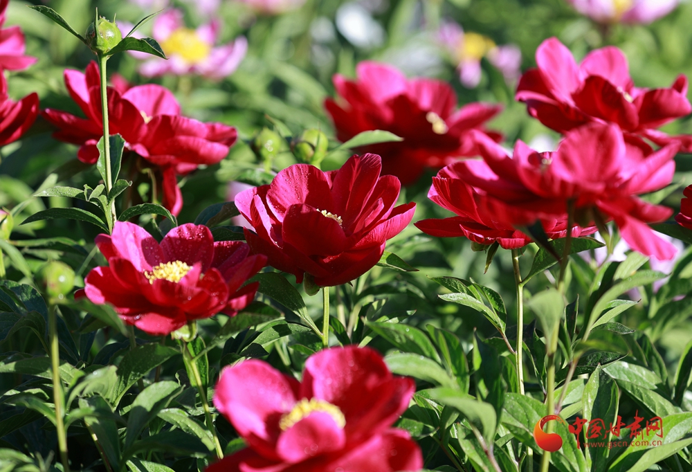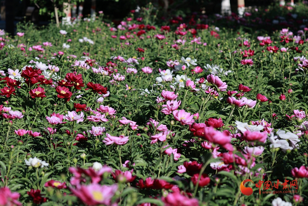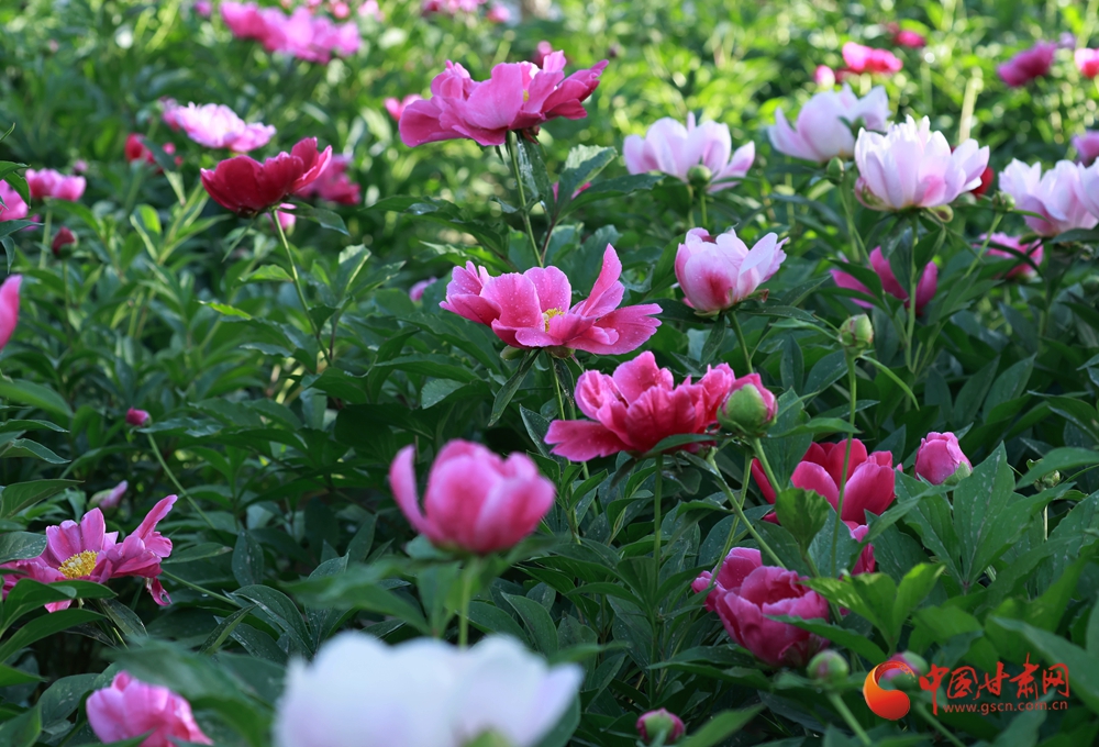近日,金塔縣芙蓉苑公園的芍藥花迎來盛花期,大片芍藥花嬌艷綻放,層層疊疊、錯落有致,紅的似火、粉的如霞、白的像雪,明艷動人的色彩交織在一起,勾勒出一幅絕美的田園初夏風(fēng)景圖。