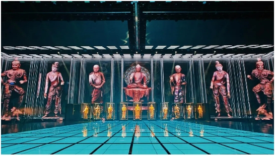 舞美奇觀:運用前沿數(shù)字技術,結合精妙的舞臺設計和燈光效果,在舞臺上立體還原敦煌洞窟的恢弘與壁畫的精妙,營造如夢似幻的沉浸式觀演體驗。