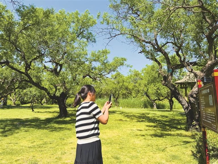 市民在仁壽山古棗樹(shù)群內(nèi)掃碼查看古棗樹(shù)群詳細(xì)信息