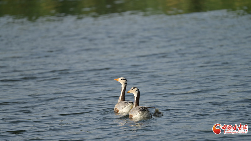 近日,臨澤雙泉湖濕地迎來一幅靈動畫面:幾只斑頭雁攜幼雛嬉水,親鳥不時低頭梳理雛鳥絨毛,幼雛劃開水面,泛起陣陣銀光。與此同時,燕鷗翩躚起舞,盤旋湖面,時而俯沖捕食,清脆鳴叫與斑頭雁低鳴相映成趣。