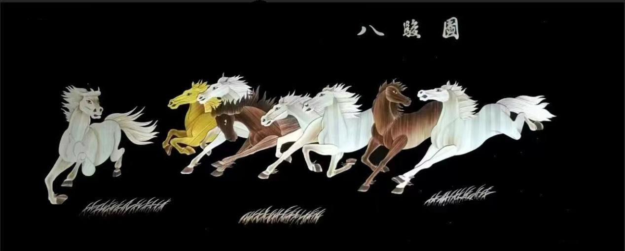 (唐彩萍麥稈畫(huà)《八駿圖》)