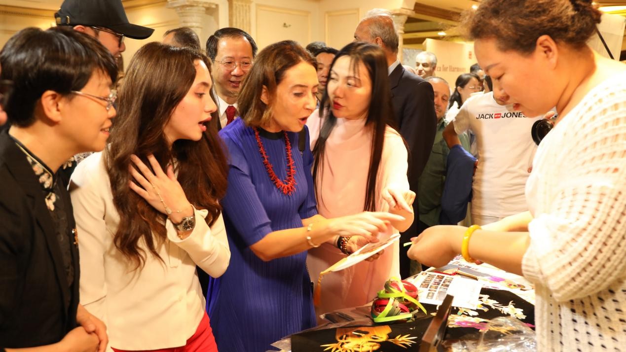 (唐彩萍在安曼為約旦王妃和公主及嘉賓現(xiàn)場(chǎng)制作麥稈畫(huà))