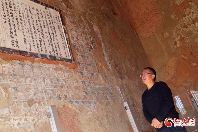 當(dāng)天,由中央及省市縣媒體記者、商業(yè)平臺(tái)編輯、網(wǎng)絡(luò)大V組成的采訪團(tuán)走進(jìn)金塔寺石窟。在這里,他們邂逅了守窟人劉國虎。