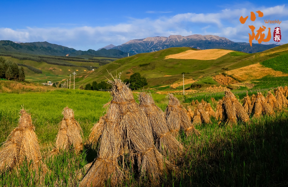 目之所及,金黃的麥捆與綠色相互映襯,用最燦爛最飽滿的顏色詮釋這片土地的豐收與希望。而遠處連綿起伏的山巒,更是為這幅畫卷增添了幾分雄渾而壯闊。