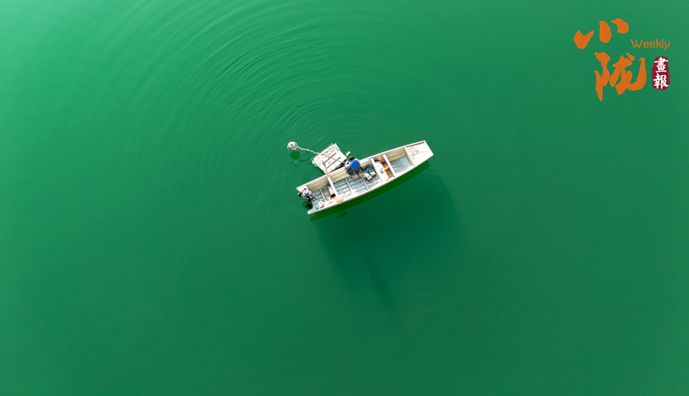 在這片湛藍(lán)的湖水中,一方方網(wǎng)箱靜靜地泊著,如同水上阡陌,將廣闊的湖面勾勒成豐饒的田園。