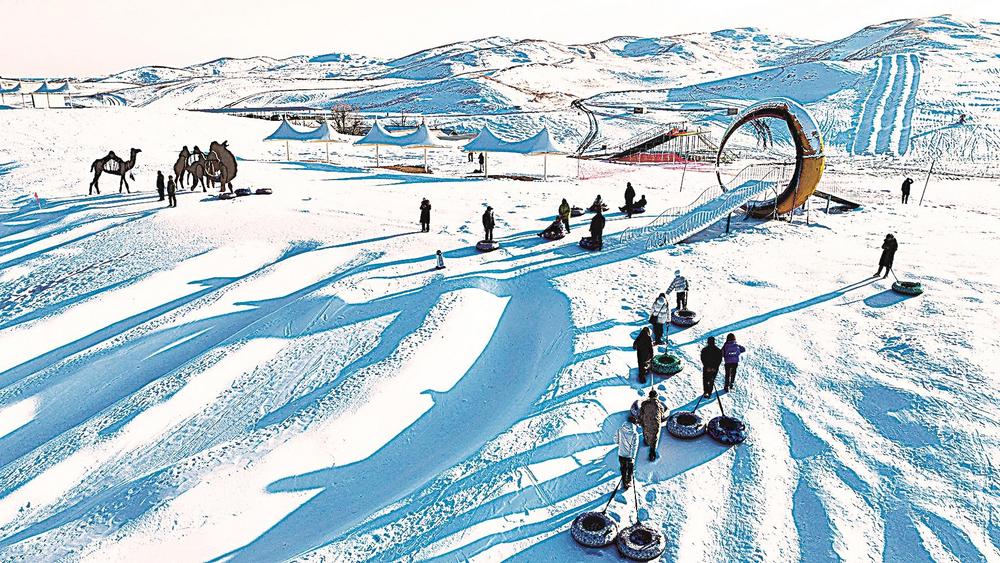 連日來,眾多游客在張掖國家沙漠體育公園冰雪嘉年華體驗冰雪樂趣,冰雪滑道、碰碰球、雪地摩托車、駱駝雪車等多樣的冰雪活動為市民游客獻上冬日文旅盛宴。 李自海 攝