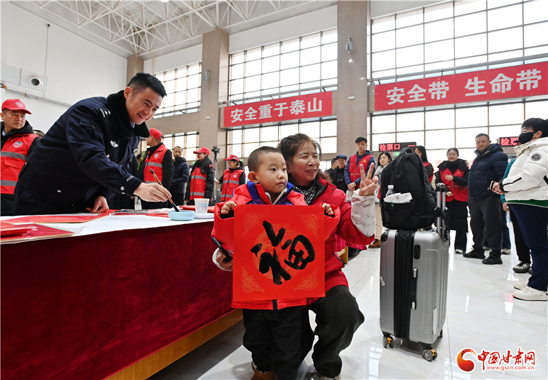 活動(dòng)現(xiàn)場(chǎng)設(shè)置了“平安送福”“登車(chē)叮囑”等宣傳服務(wù)項(xiàng)目,現(xiàn)場(chǎng)為旅客、駕駛?cè)速?zèng)送春聯(lián)、福字,提醒春運(yùn)文明安全出行。