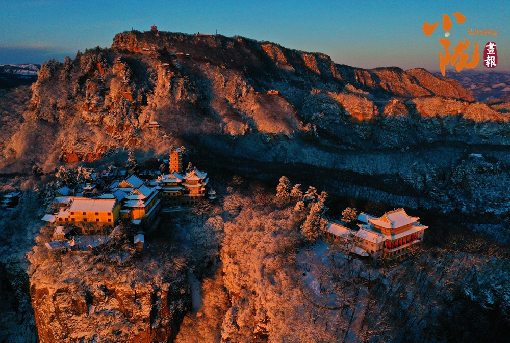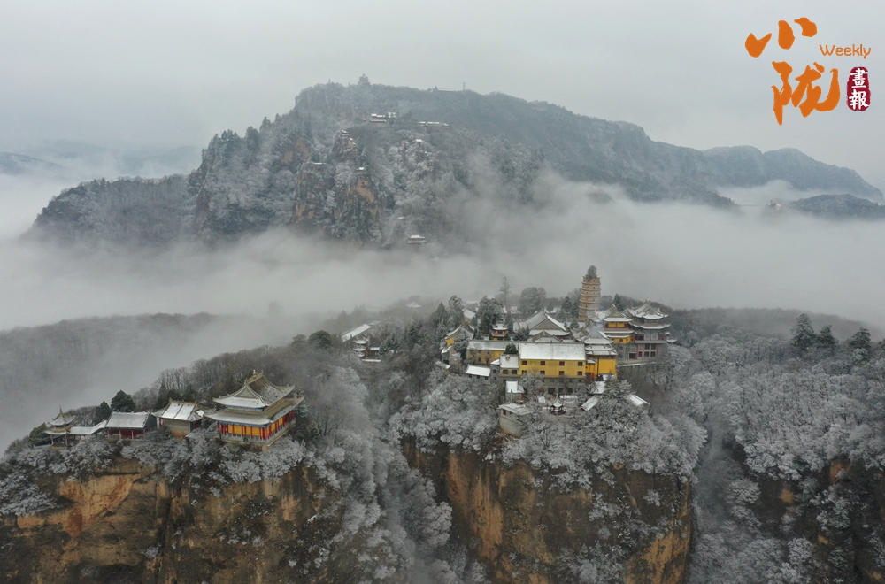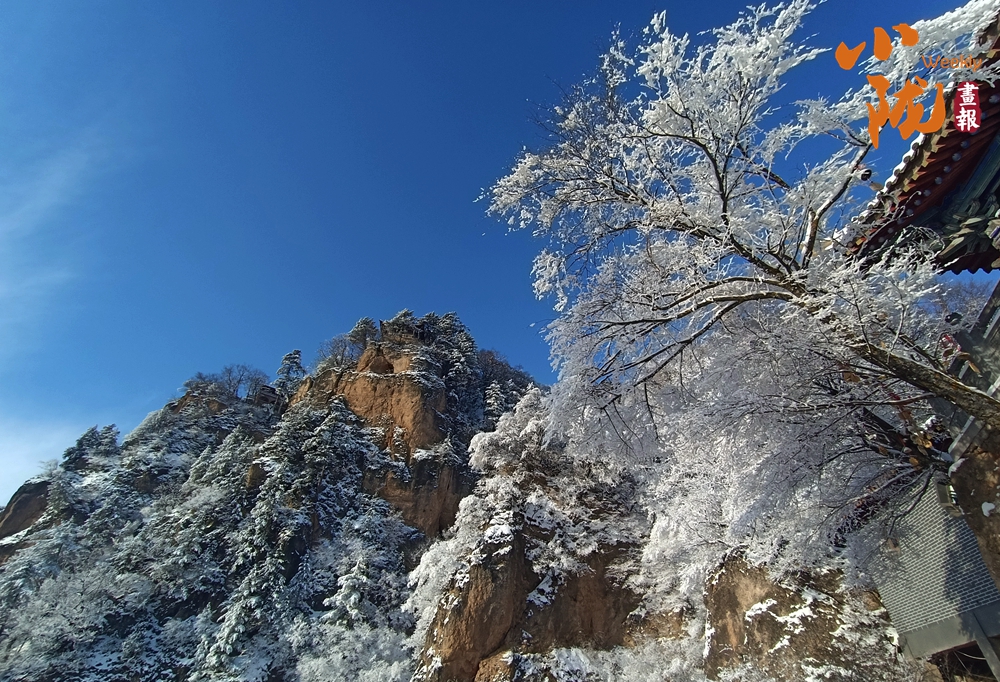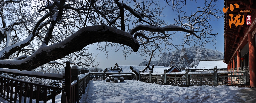 雪,為“西來(lái)第一山”披上了一襲亙古的素衣。舉目望去,朱紅的宮墻、青黑的瓦當(dāng),在白雪的映襯下,色彩格外鮮明莊重。