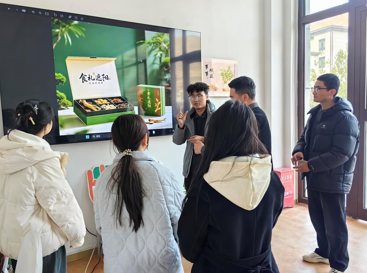 “食禮遮陽”宣傳小分隊成員討論藥材包裝細節(jié)。中青報·中青網(wǎng)記者 王豪/攝