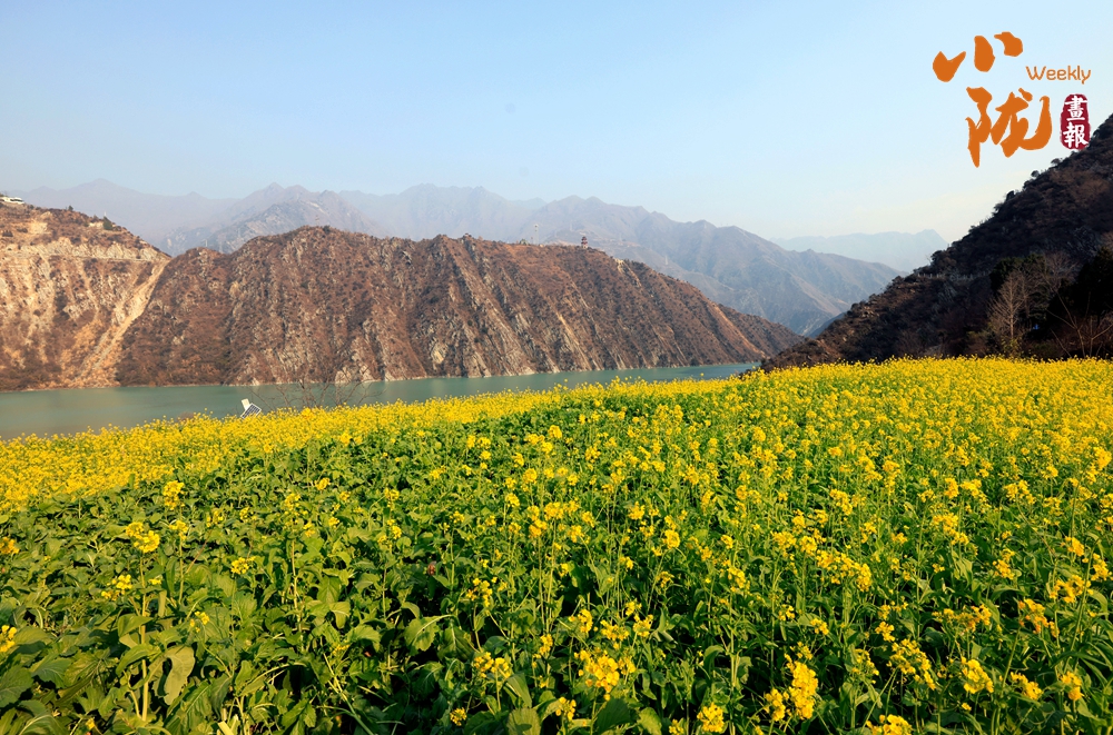 那一叢叢、一簇簇的油菜花,沿著梯田層層疊疊,從江邊一直蔓延到半山腰,鋪展在青山碧水之間;又像是大地剛剛蘇醒時,打翻的調(diào)色盤。