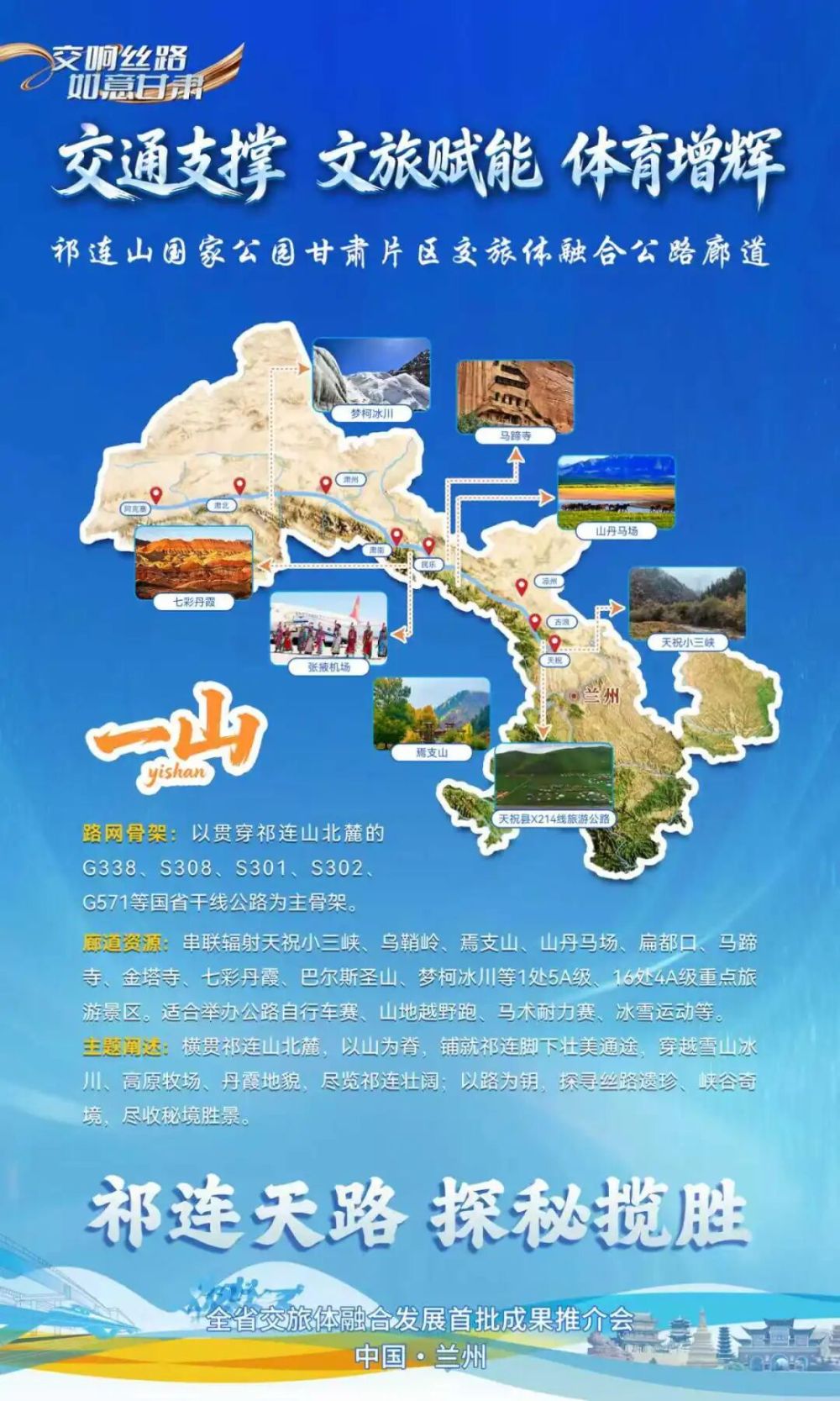 以“祁連天路 探秘?cái)垊?rdquo;為主題,打造祁連山國(guó)家公園甘肅片區(qū)交旅體融合廊道,即“一山廊道”。