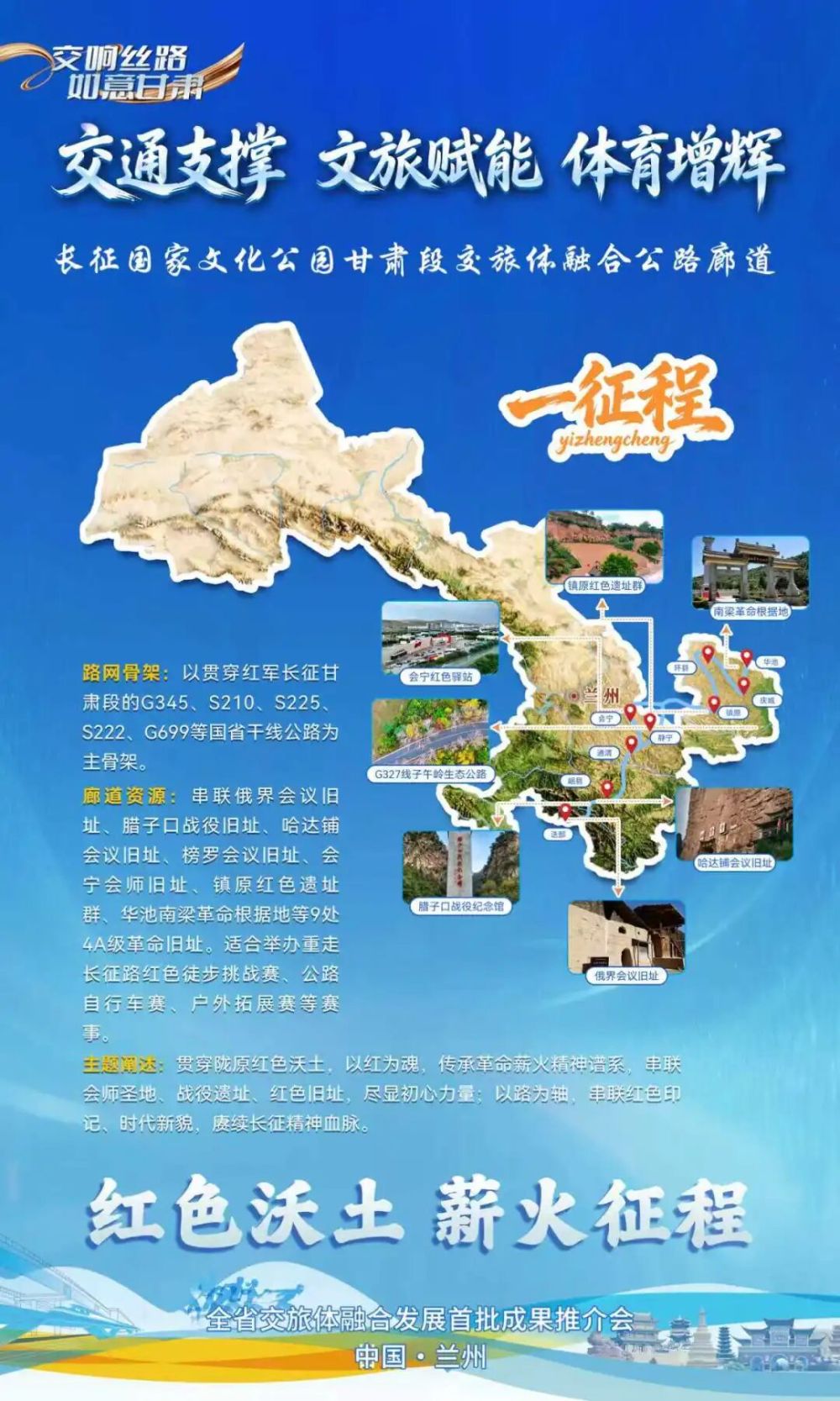 以“紅色沃土 薪火征程”為主題,打造長(zhǎng)征國(guó)家文化公園甘肅段交旅體融合廊道,即“一征程廊道”。